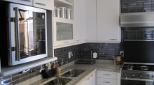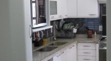 Roupeiro da Ornare. Todos os armários embutidos são da Ornare. Cozinha da Favo.