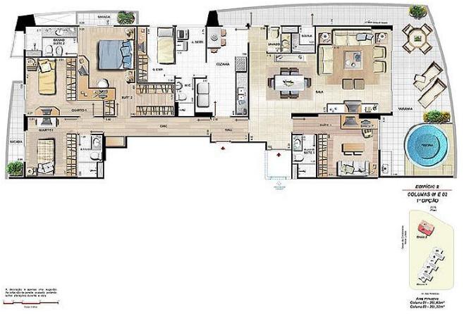 Raridade: Vista Mar e Reserva, sol da manhã. Indevassavel. 209 m², Salao com 2 ambientes, em porcelanato e com rebaixo de teto e projeto de iluminação. Home Theater. Varanda com fechamento de vidro e piscina. Original 4 qts, transformado em 3, sendo a suite master com closet. Lavabo, dependencia completa. Armários quartos, cozinha e banheiros.