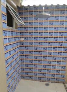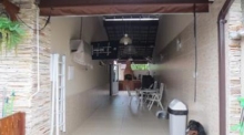 Ótimo quintal com piso em granito rústico e porcelanato, 01 banheiro c/blindex, quarto de ferramentas, área gourmet, chuveirão, churrasqueira e garagem para 02 veículos.
