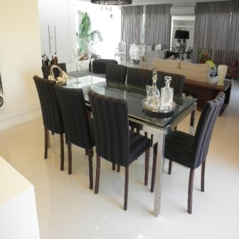 Lindíssima mansão localizada no Condomínio Santa Mônica Jardins. Os proprietários encomendaram o projeto a arquiteta Fernanda Salles e a sua construção tem acabamentos de primeiríssima. São três andares, onde no piso térreo temos os salões com vista para o lazer que conta com uma linda piscina com bar molhado, cercada por jardins, sauna, sala de ginástica, churrasqueira e a sala de almoço. Neste piso temos ainda, ampla copa-cozinha, lavanderia, duas dependências de empregada e suíte para o motorista. As quatro suítes da família ficam no segundo piso e contam com excelentes closets, sendo que a máster conta com uma sala de banho com dependências duplas, além de um quarto de vestir e varandão. Neste piso há também um escritório e uma copa de apoio. O sótão no terceiro piso é amplo e arejado. Nele tem um lavabo e uma copa de apoio. Os armários são Roma e a casa conta com aquecimento solar, aproveitamento de água da chuva, irrigação automática e excepcionais reservatórios de água.