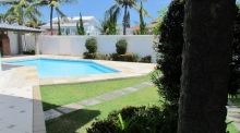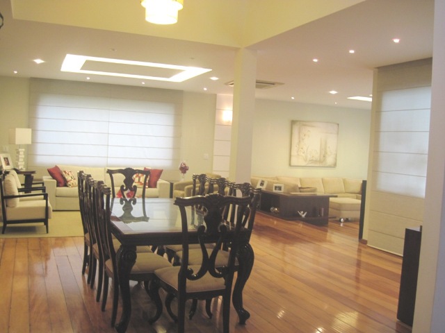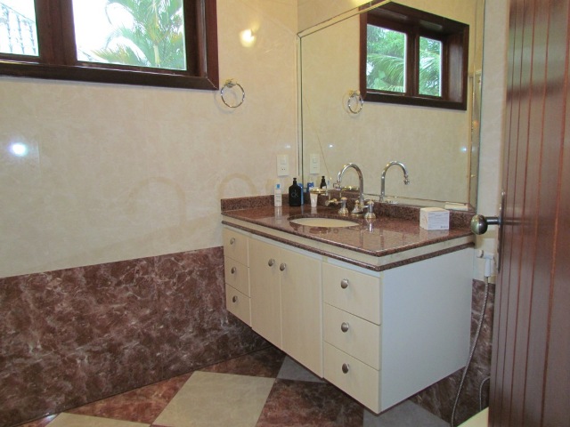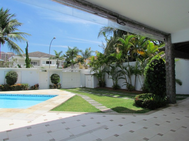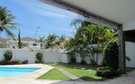 Descrição: Condomínio com a melhor localização da Barra! Próximo aos Shoppings: Rio Design, Novo Leblon, Millennium, com farto comércio e escolas: Santa Marina! Bela casa, em excelente estado de conservação, com ótima localização no condomínio. Composta de hall de entrada, salão em 4 ambientes, lavabo, 1 suíte térrea, ampla copa-cozinha, lavanderia, 4 vagas cobertas, churrasqueira, piscina e sauna. No 2º andar salão, sala íntima, 5 quartos sendo 4 suítes com closet e a master com hidro. Belos jardins.