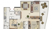 Descrição: Apartamento duplex com 146 m² distribuídos em 2 pavimentos. sol da manhã. 1º pavimento: varanda com belíssima vista da Lagoa, sala de estar com pé direito duplo, sala de jantar, banheiro social, quarto, copa, cozinha, área de serviço, dependência completa reversível; 2º pavimento: 3 quartos (1 suíte), banheiro social. 3 vagas de garagem.