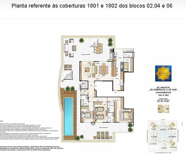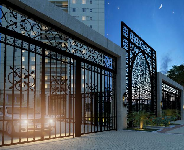 Descrição: No Majestic a inspiração árabe oriental está presente em cada detalhe. No Paisagismo exuberante com belas palmeiras e tamareiras, desenhos de piso e serralherias nos detalhes de lobbies e áreas comuns, além de peças exclusivas que vão compor uma atmosfera de mistério e requinte por todo o empreendimento.