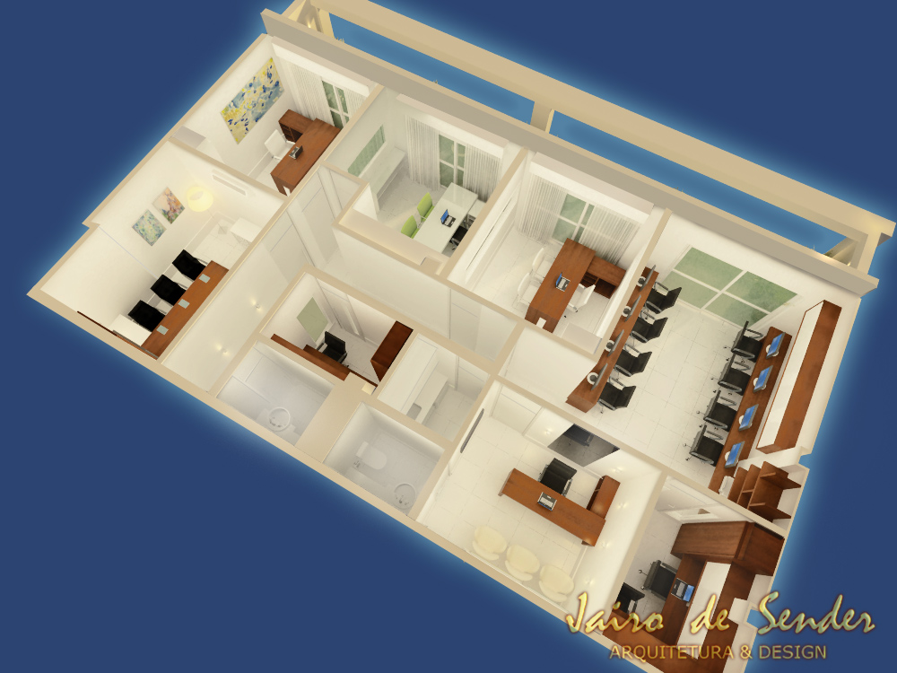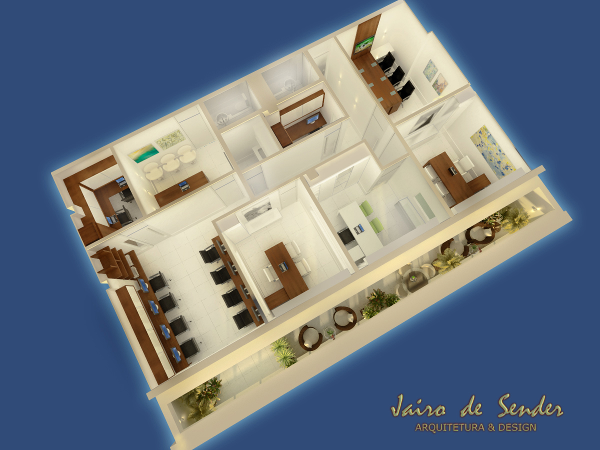 Descrição: Cobertura comercial com 120m ², composta por duas amplas salas, varandas com bela vista para o chafariz interno, 2 banheiros, 1 copa, 2 vagas. Decorada pelo arquiteto Jairo de Sender.