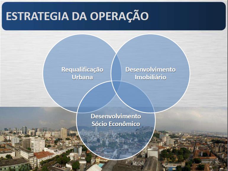 em um pólo atrativo para as crescentes demandas corporativas, comerciais e habitacionais do Rio de Janeiro. Será estruturada por meio da ampliação e requalificação dos espaços públicos da região, visando à melhoria da qualidade de vida de seus moradores e à sustentabilidade ambiental e socioeconômica da área. O projeto abrange uma área de 5 milhões de m², a maior área de revitalização do mundo, que tem como limites as Avenidas Presidente Vargas, Rodrigues Alves, Rio Branco, e Francisco Bicalho. OPERAÇÃO URBANA Projeto de revitalização da Praça Mauá