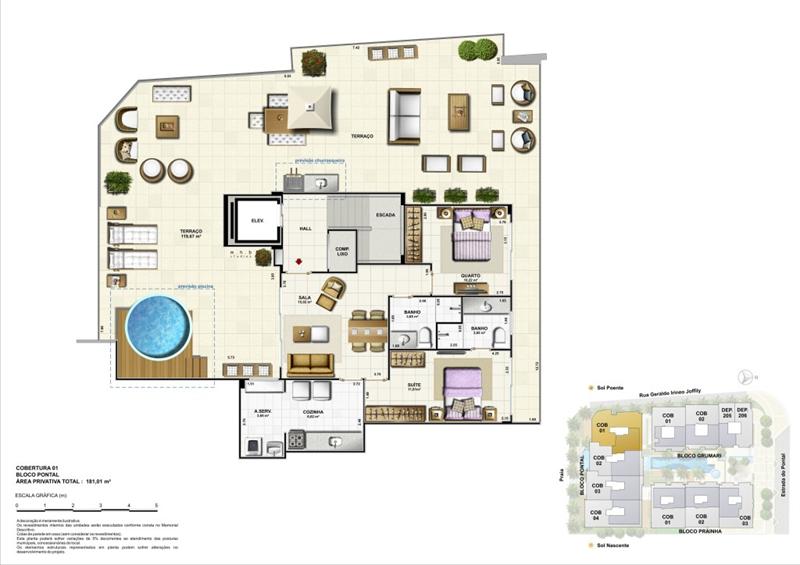 Descrição: Mais do que um desejo, um lugar onde a natureza foi transformada em sofisticação. Apartamentos de 2 quartos e coberturas até de 3 quartos.