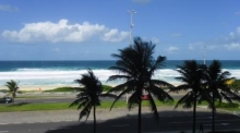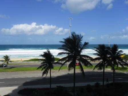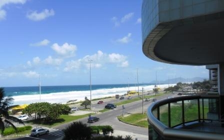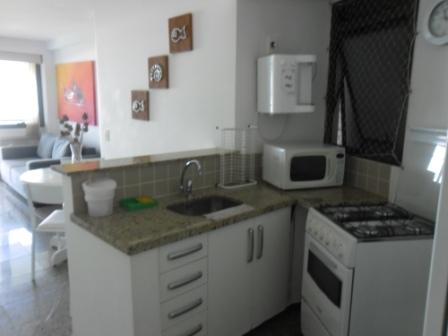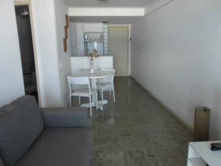 Flat com 42 m², frontal mar, decorado, sala com ar refrigerado, cozinha com armários, geladeira nova, quarto com armários, banheiro com blindex e armários. 1 vaga. Condomínio com infra estrutura.