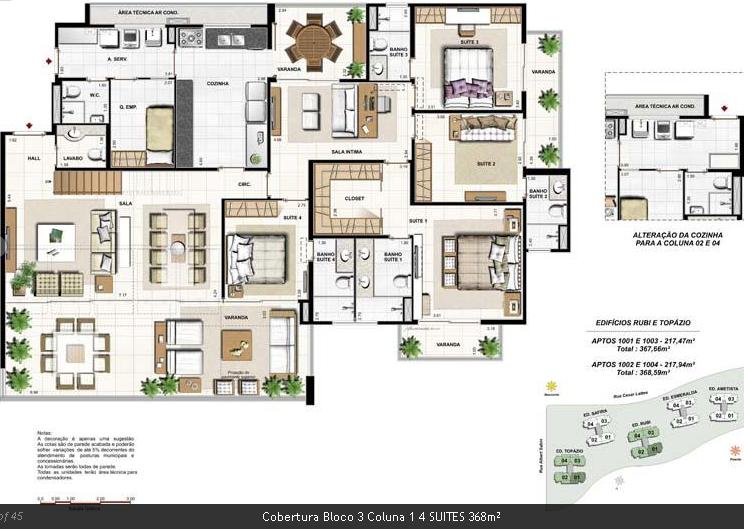Descrição: Royal Blue - Apartamentos de 4 quartos na Barra da Tijuca. Unidades tipo com área privativa entre 169 e 217m²; coberturas com área entre 289 e 369m²; com 2 ou 4 suítes e ampla varanda. Infraestrutura de lazer e segurança. Empreendimento com área total de 21.765m²; amplo aproveitamento de área verde, com apenas 15% de terreno construído. Situado entre o mar e o verde, possui vista indevassável para a Área de Preservação Ambiental. Localizado próximo aos grandes shoppings e comércio da região.
