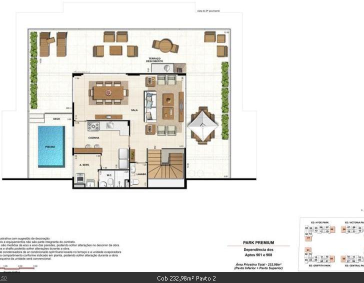 Descrição: Victoria Park Recreio Residences - Apartamentos de 3 quartos no Recreio dos Bandeirantes. Apartamentos no térreo com jardim com área privativa entre 117,85 e 143,49m²; apartamentos tipo com área privativa com área privativa entre 79,44 e 97,27m² e coberturas com área privativa entre 166,36 e 232,98m². Unidades com 1 suíte, varanda e com 2 vagas de garagem. Infraestrutura de lazer completa e serviços pay-per-use. Localizado a poucos instantes de todos os serviços da região. Antecipe-se ao lançamento.